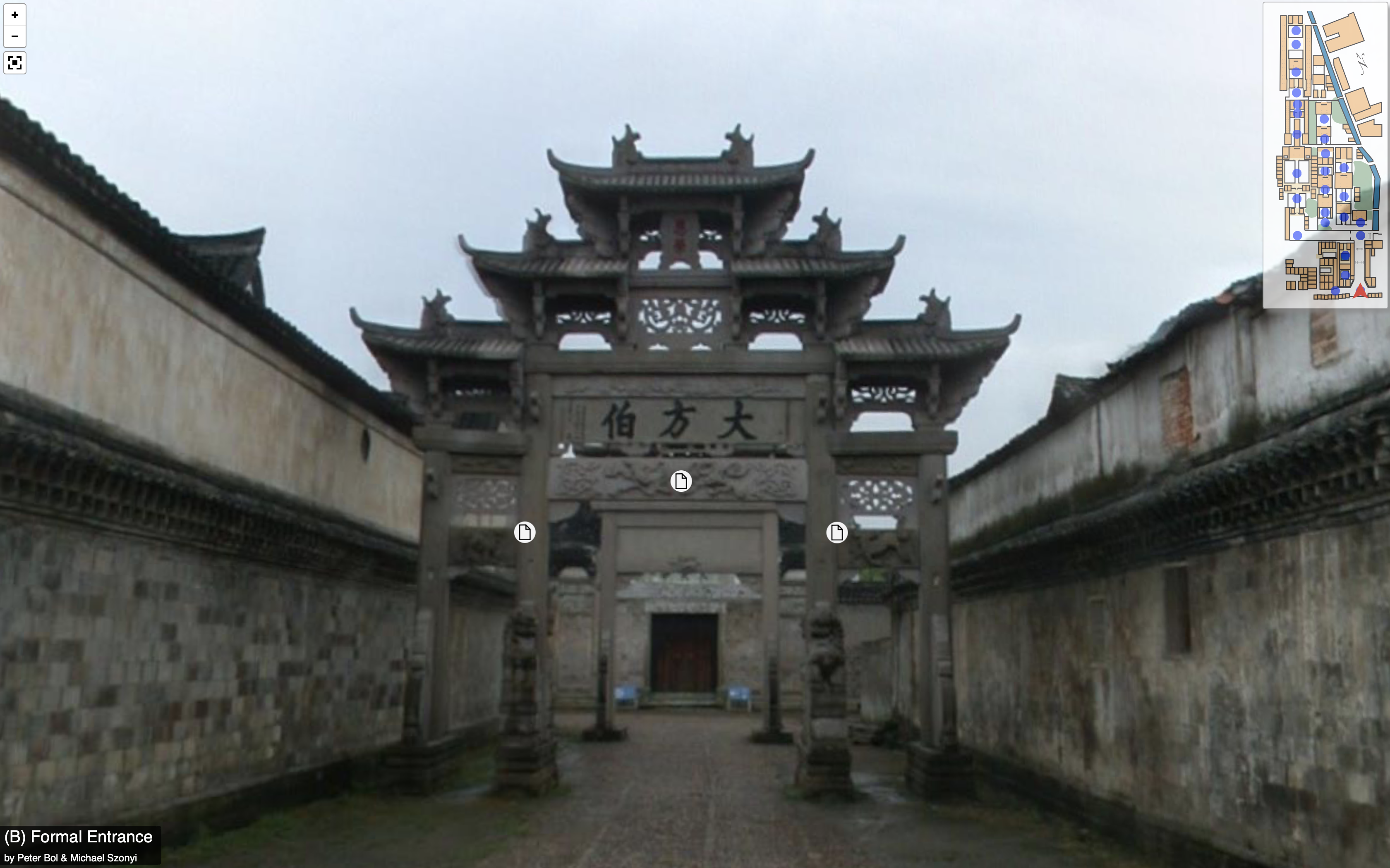 This ornamental gateway (in Chinese called a paifang 牌樓 ) with its three entrances commemorates five distinguished members of the Lu Family. The centre records the three brothers, each of whom passed the metropolitan exams. The top inscription “Great Regional Earl" 大方伯 is most likely a reference to the provincial commands held by one or several of the men commemorated here. |