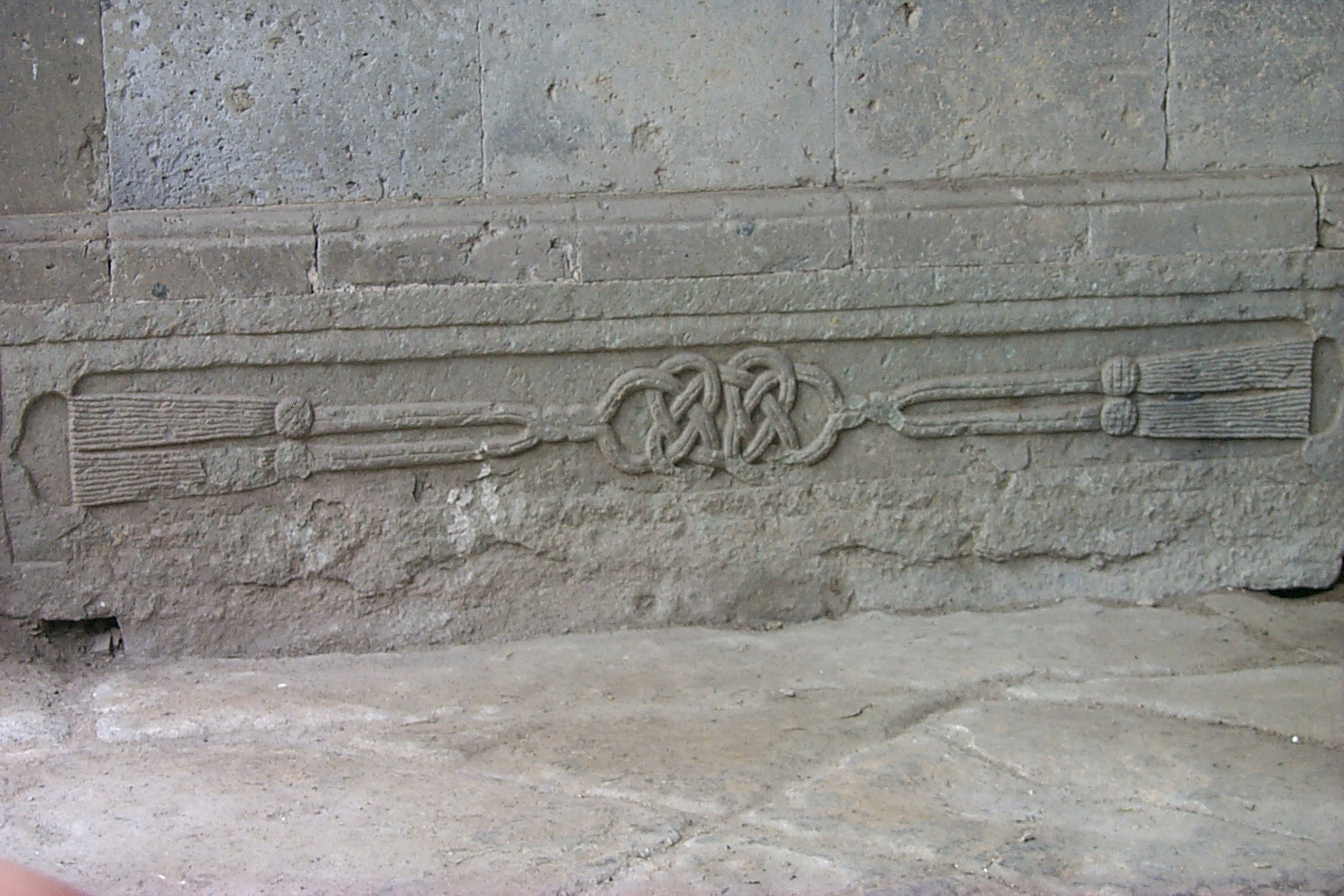 Stone carving on the left side of the gate |