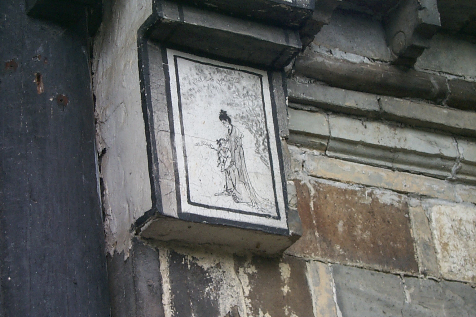The deail of the painting on the bracket: a mother and her child. |
