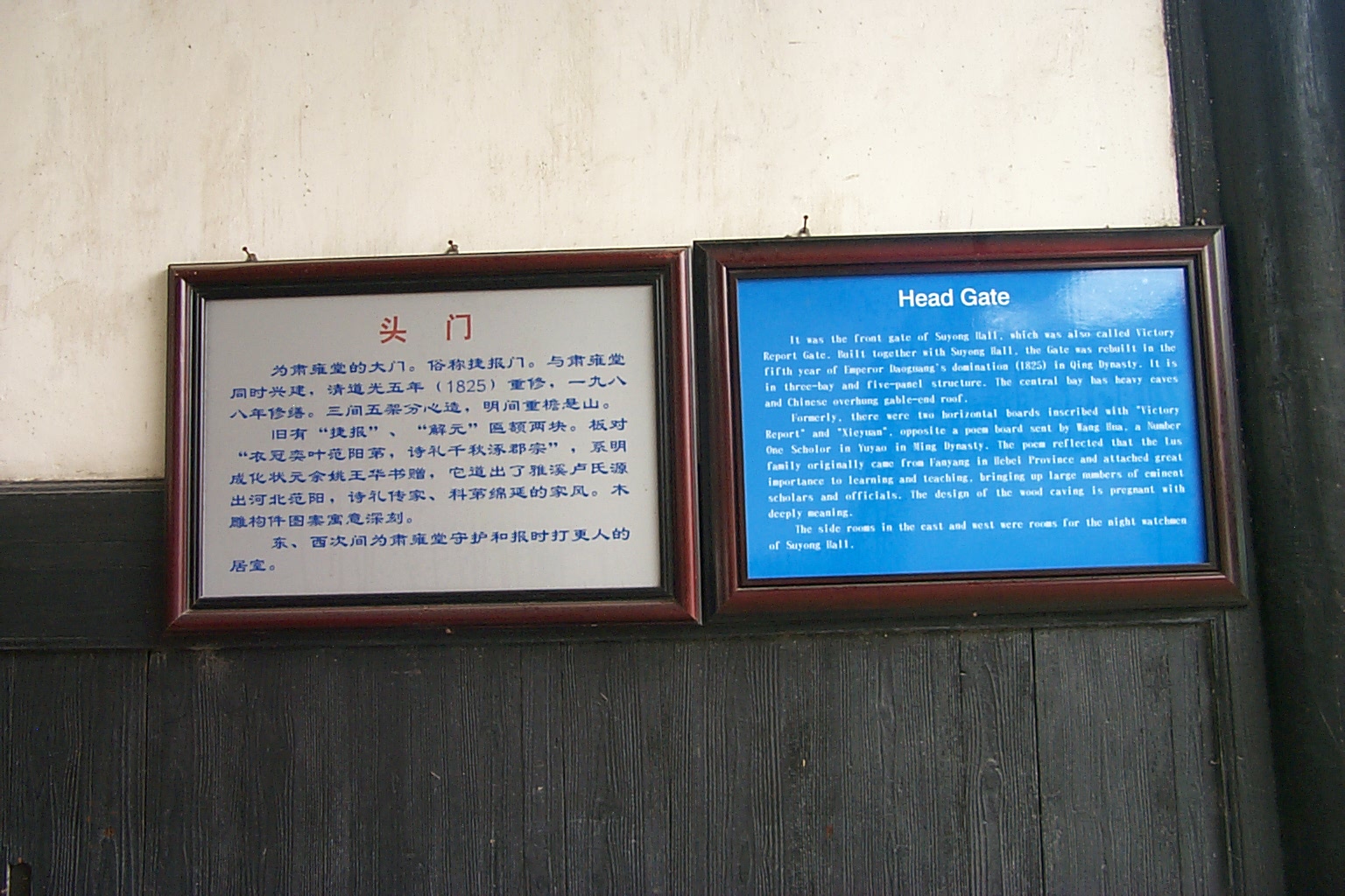 The Chinese and English introduction to the hall. |