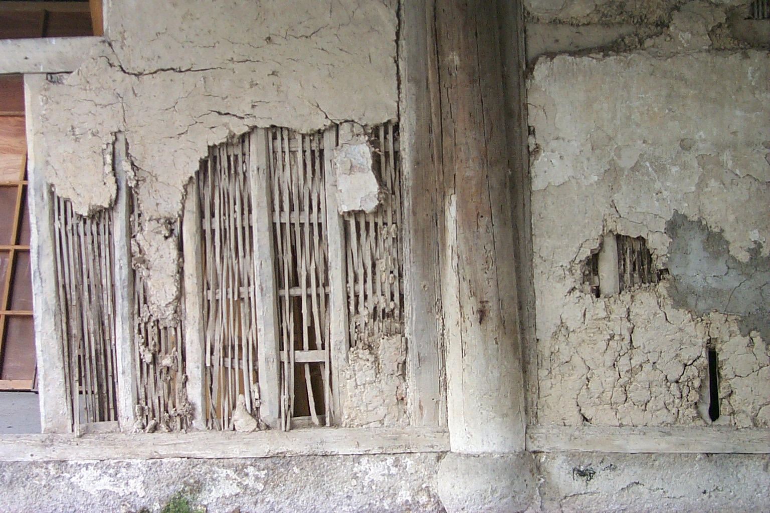 The dilapidated wall of the hall |