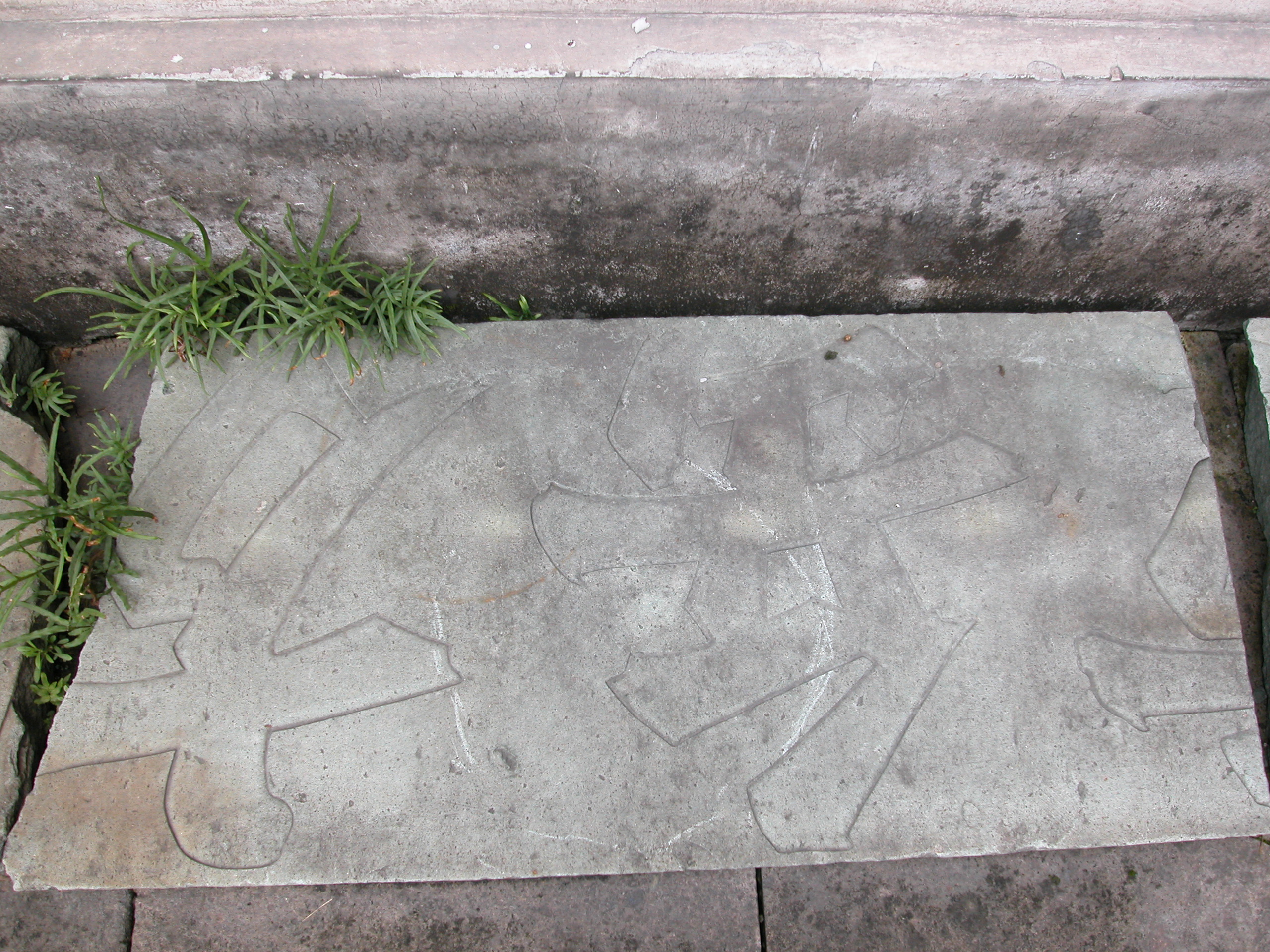 One part of a stone plaque in the front yard. the plaque has broken into two parts. The next picture shows the other one. The plaque says: 'Provincial Commissioner' |