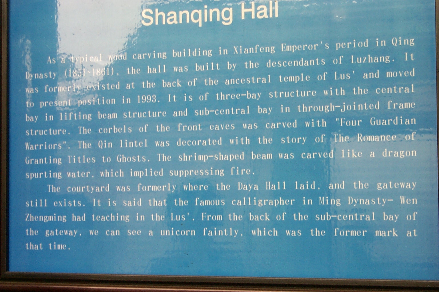 English introduction to the hall |