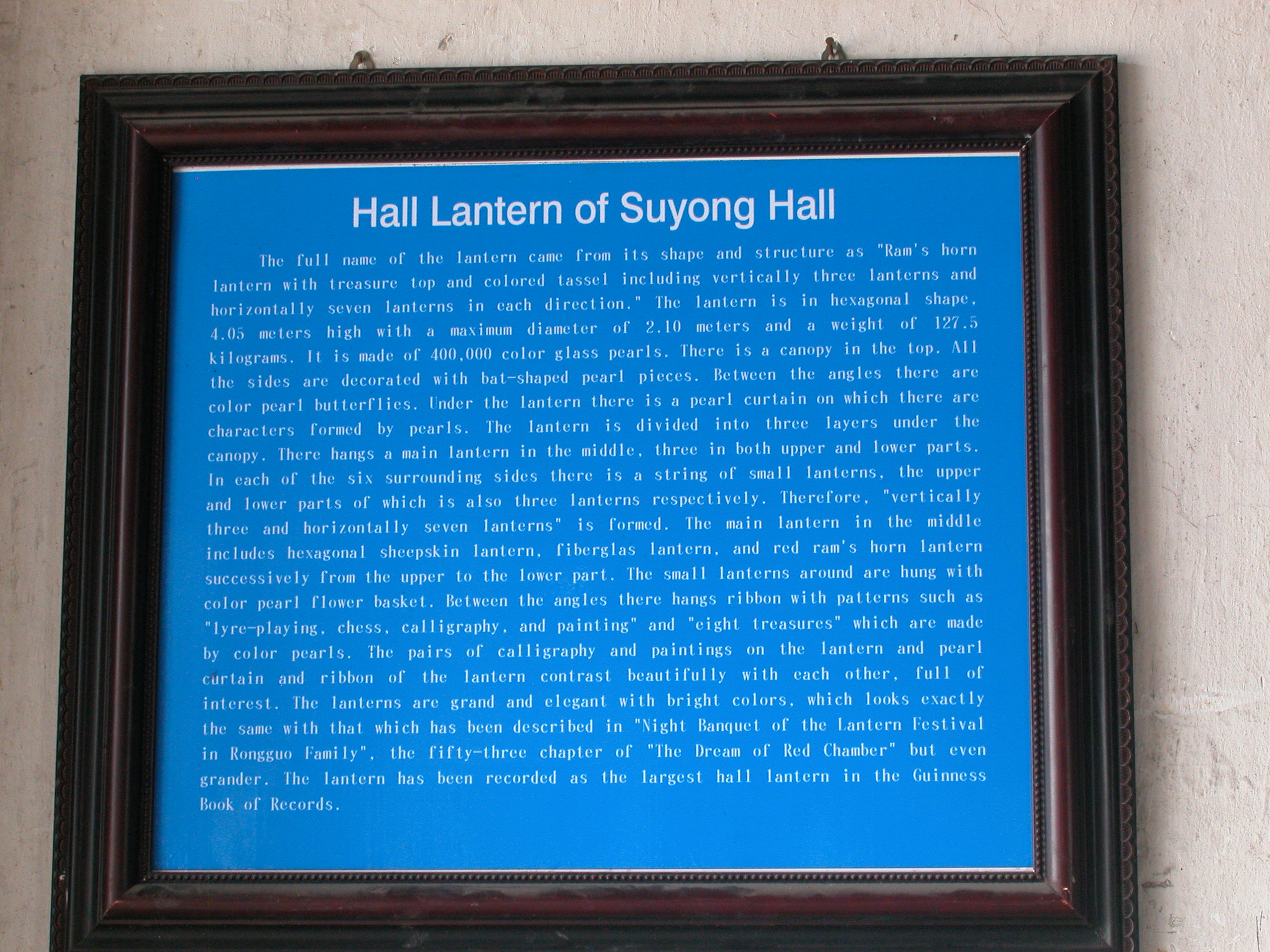 Introduction to the hall lantern of Suyong in English |