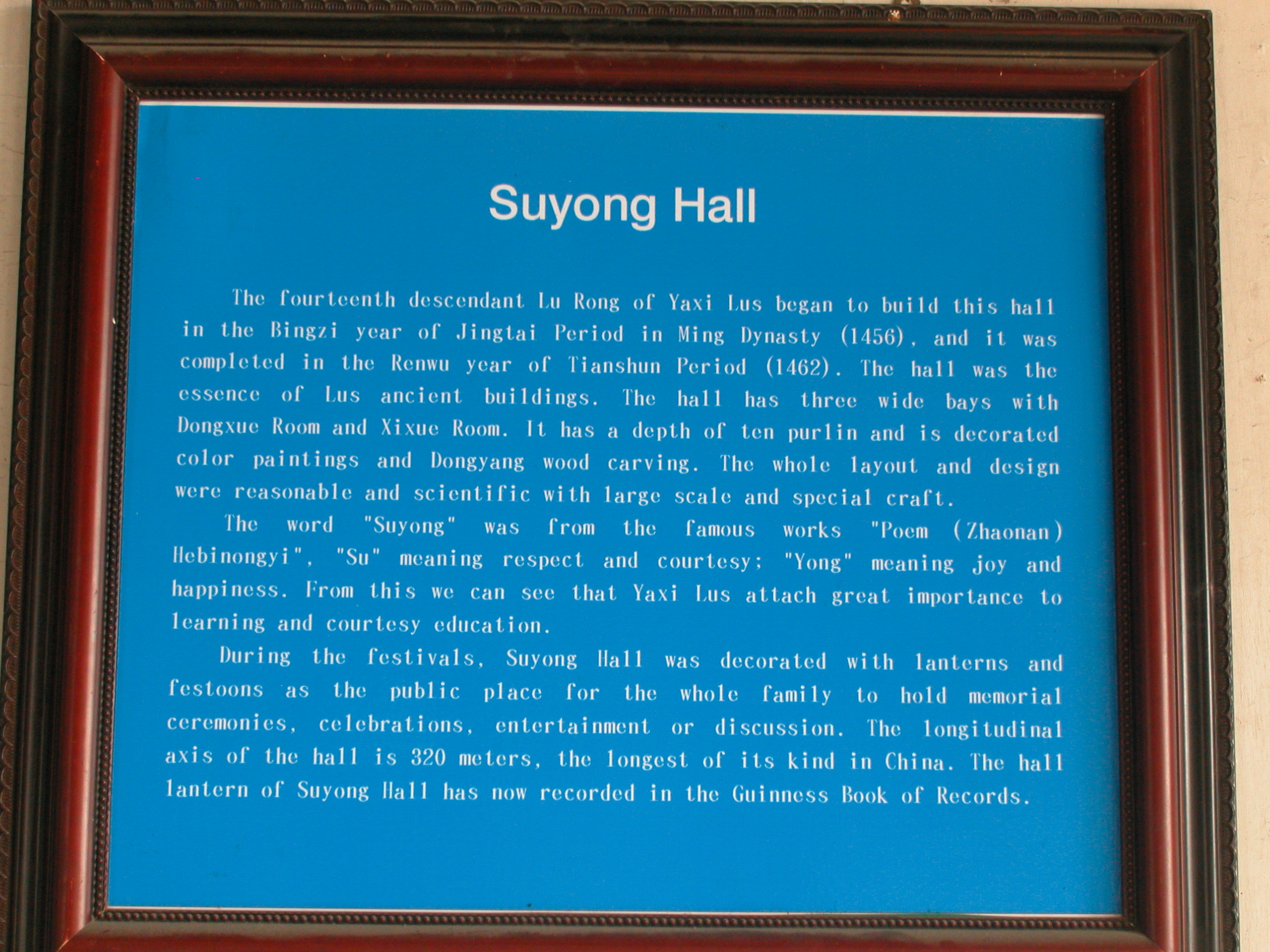English introduction to the hall |