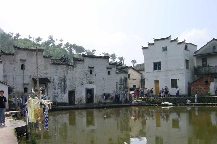 Zhiyan Village is located at the northeastern edge of Lanxi. Zhi is the name of a fungus said to bring good fortune it is also the name of the imposing mountain behind the village. Yan is a dam to regulate the flow of a stream. The village had the good fortune to be located where a stream flowed out of the mountains, guaranteeing it a water source during dry times, whereas other villages had to store water in ponds. Half-moon Reservoir at the bottom of the village is fed by the stream and is said by the villagers to represent their accumulated good fortune.